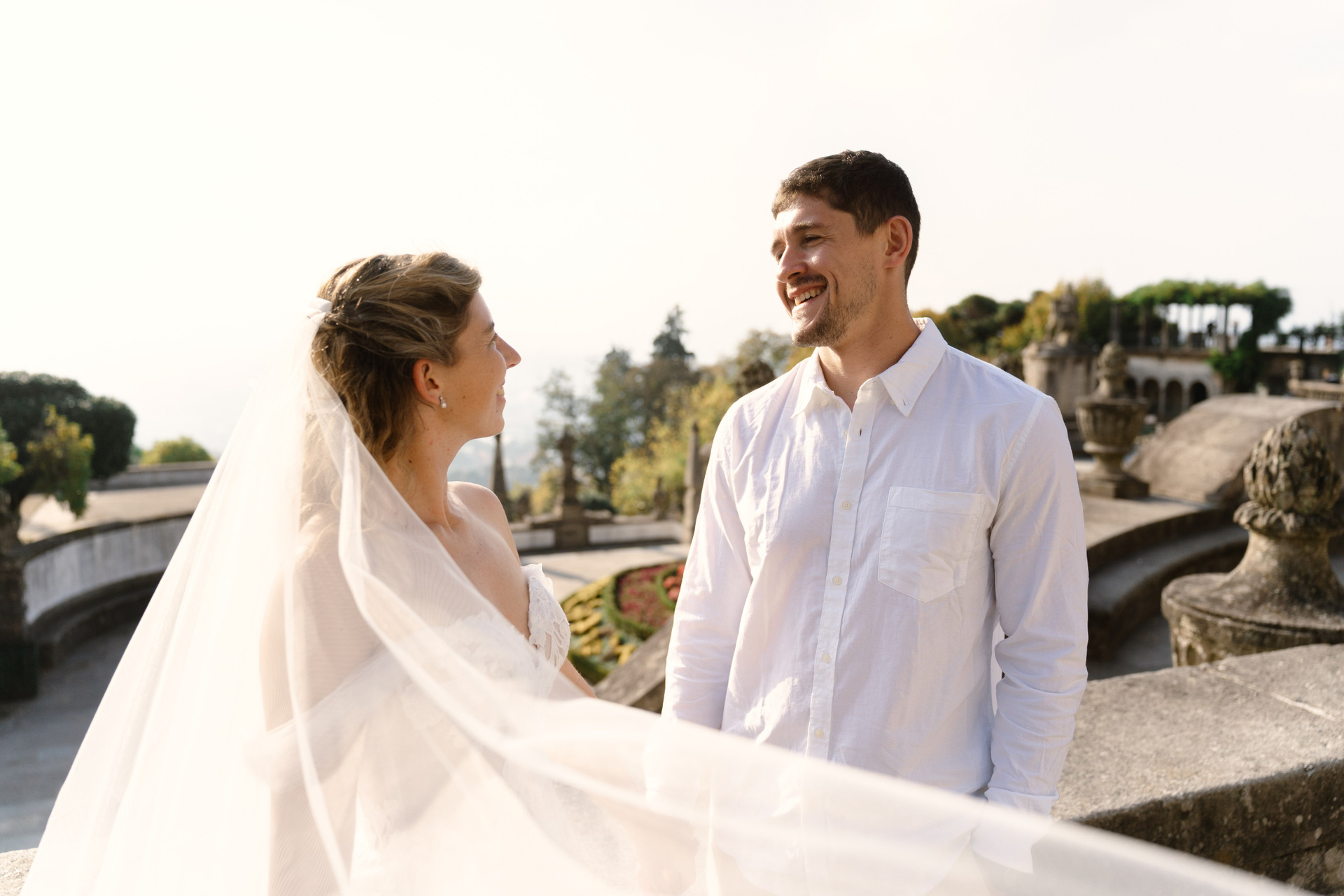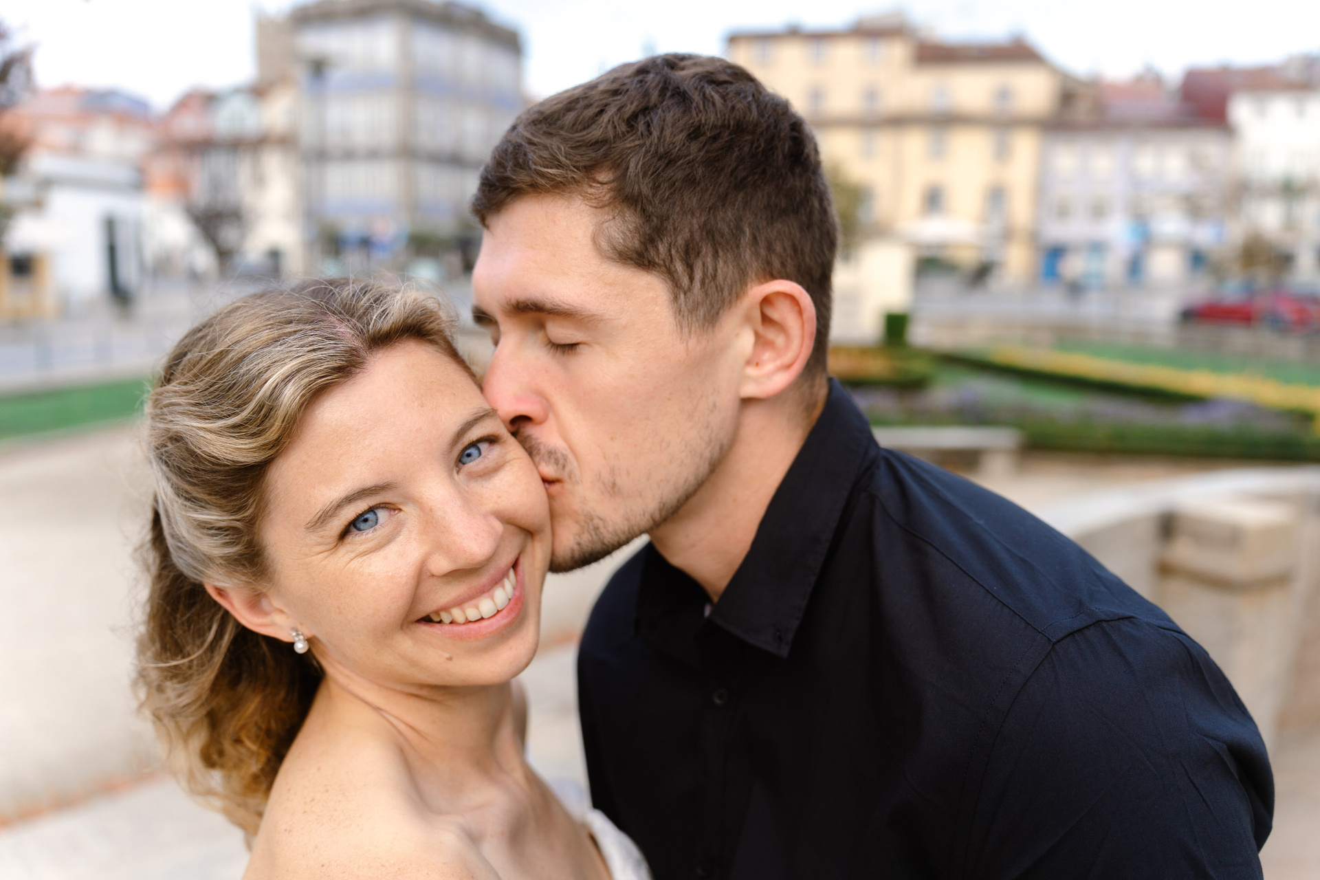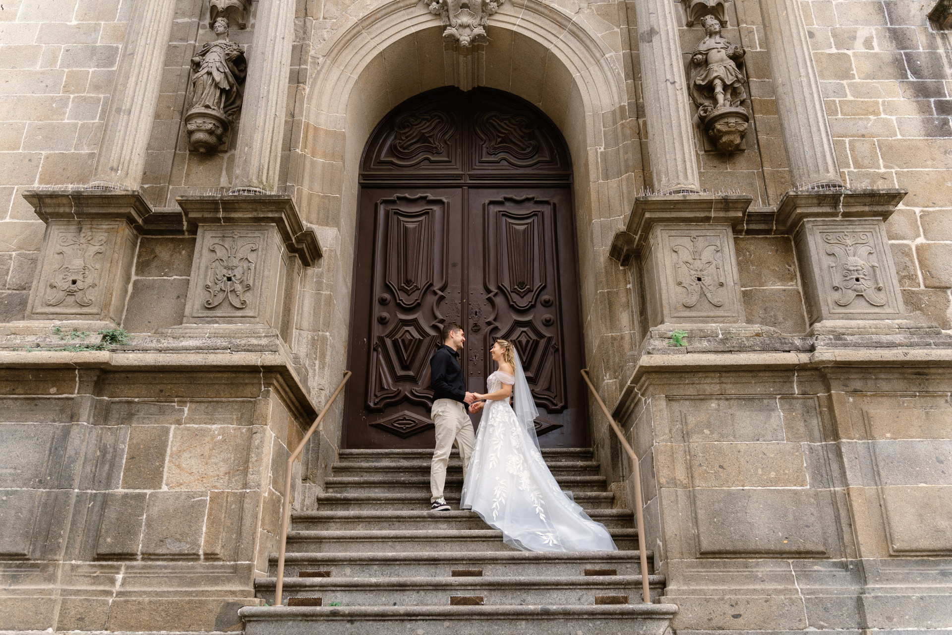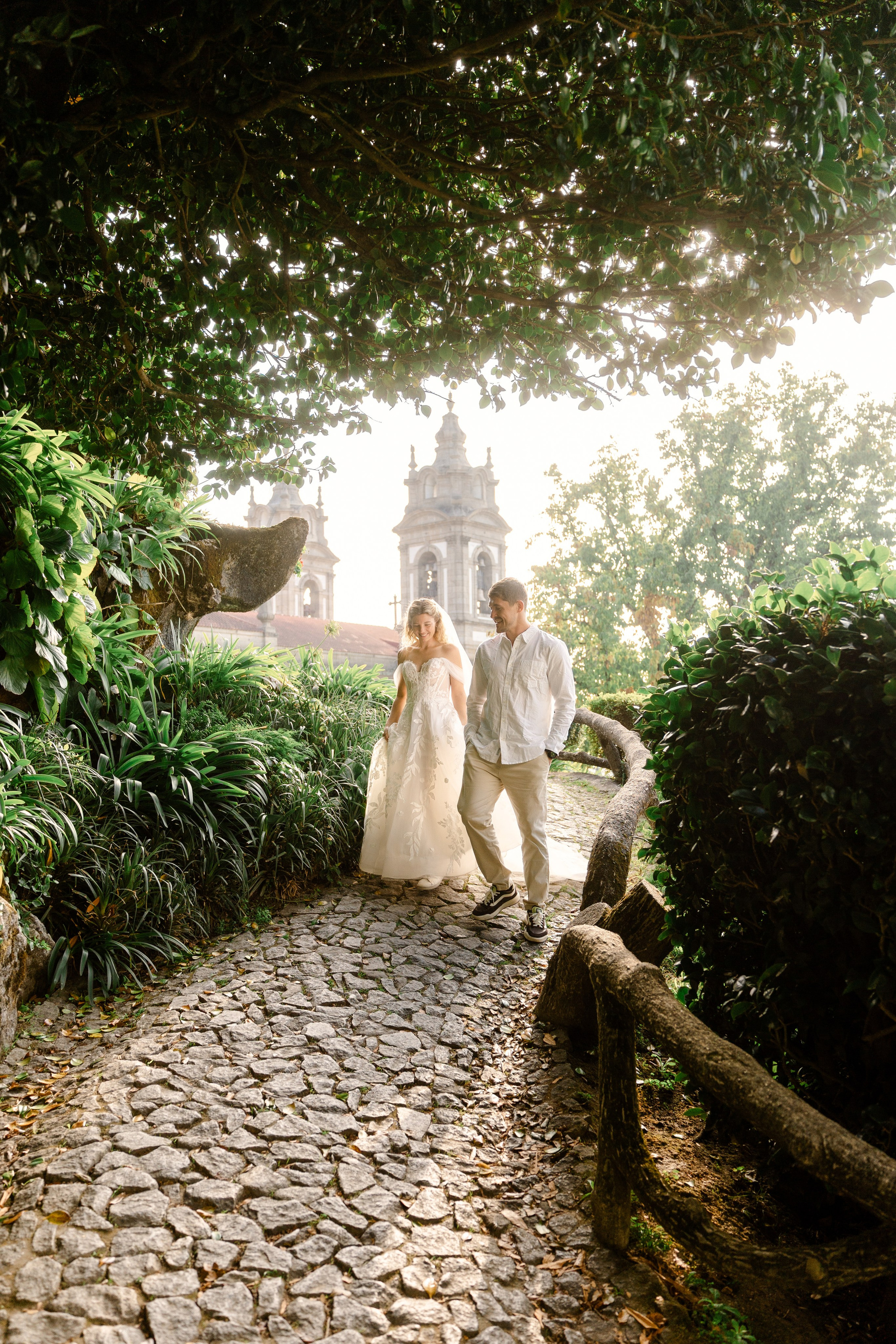 Braga offers a slower pace compared to larger cities, making it perfect for a relaxed wedding walk. The mix of structured architecture and soft natural light allows moments to unfold naturally while keeping a classic and refined look in photos.