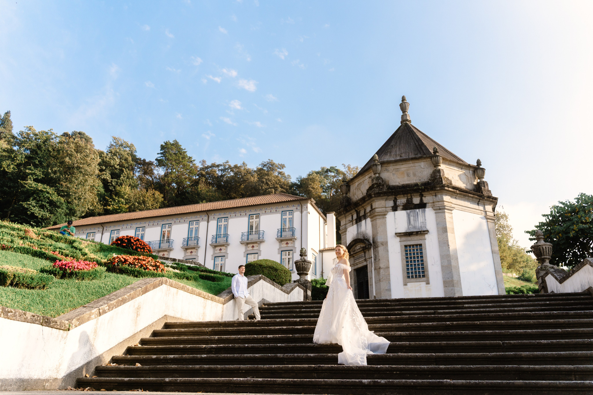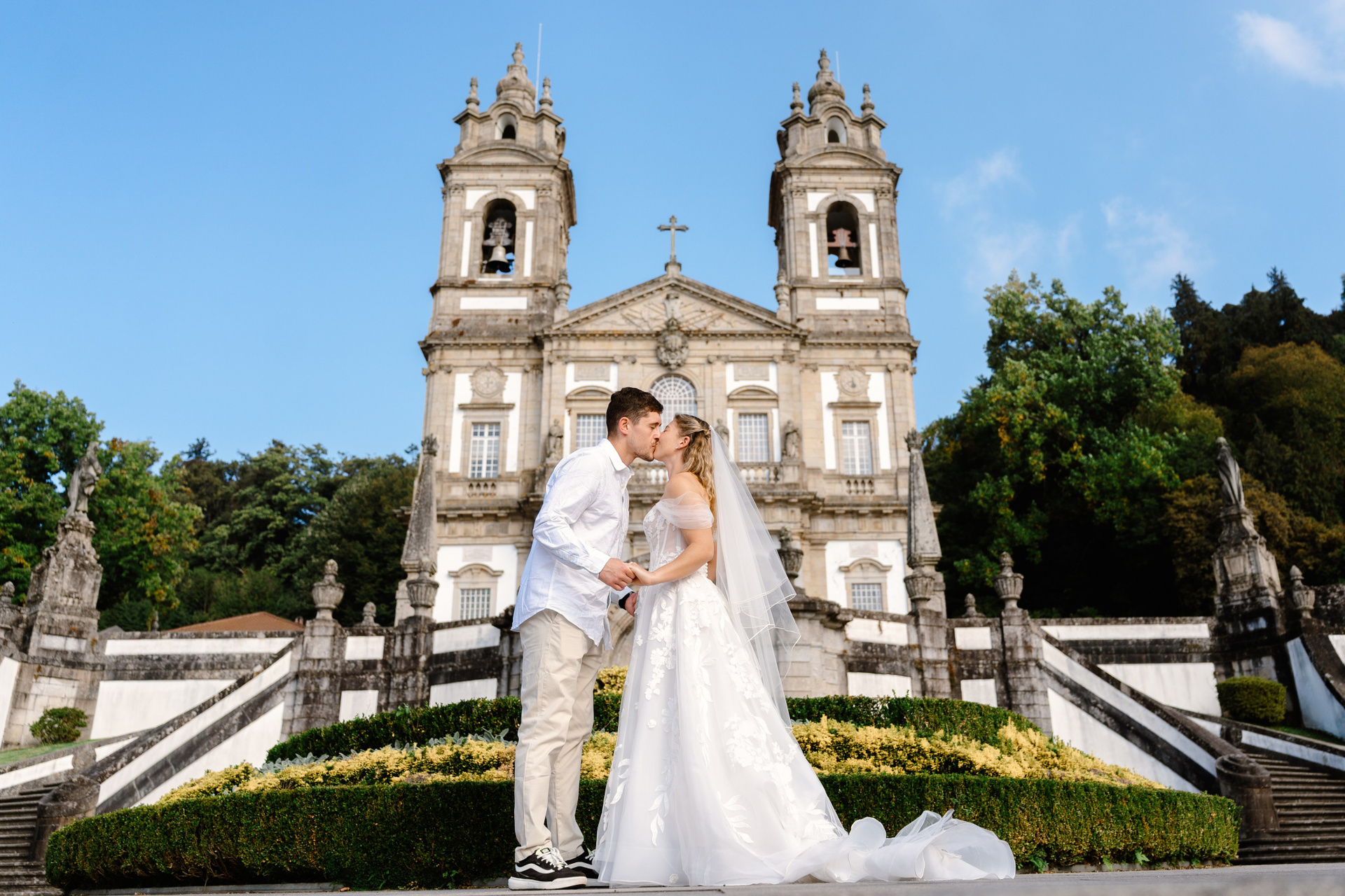 A wedding photoshoot in Braga combines historic architecture with quiet city streets and one of Portugal’s most iconic landmarks — Bom Jesus do Monte. From grand stairways to calm old town corners, this setting creates a timeless and elegant atmosphere for wedding photography.